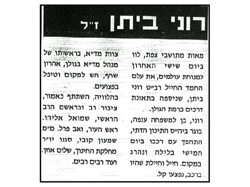 חללים נוספים מהגולן