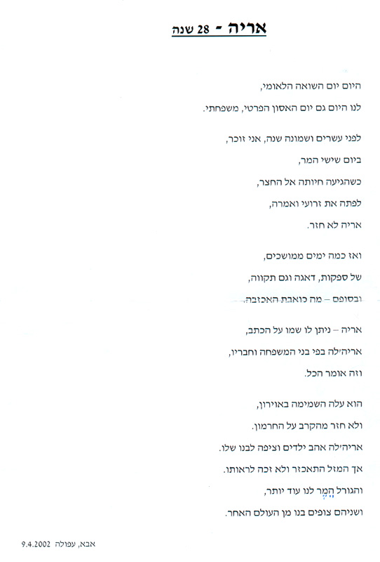 פורסם באתר "בועה חדשה" ע"י בן דודו של אריה