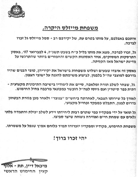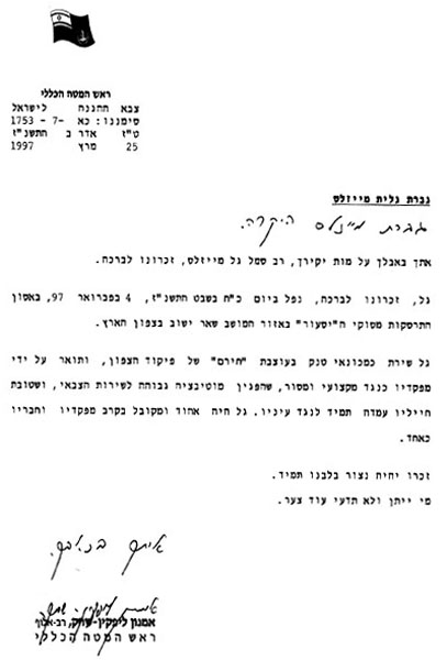 מכתב מהרמטכ"ל רא"ל אמנון ליפקין-שחק